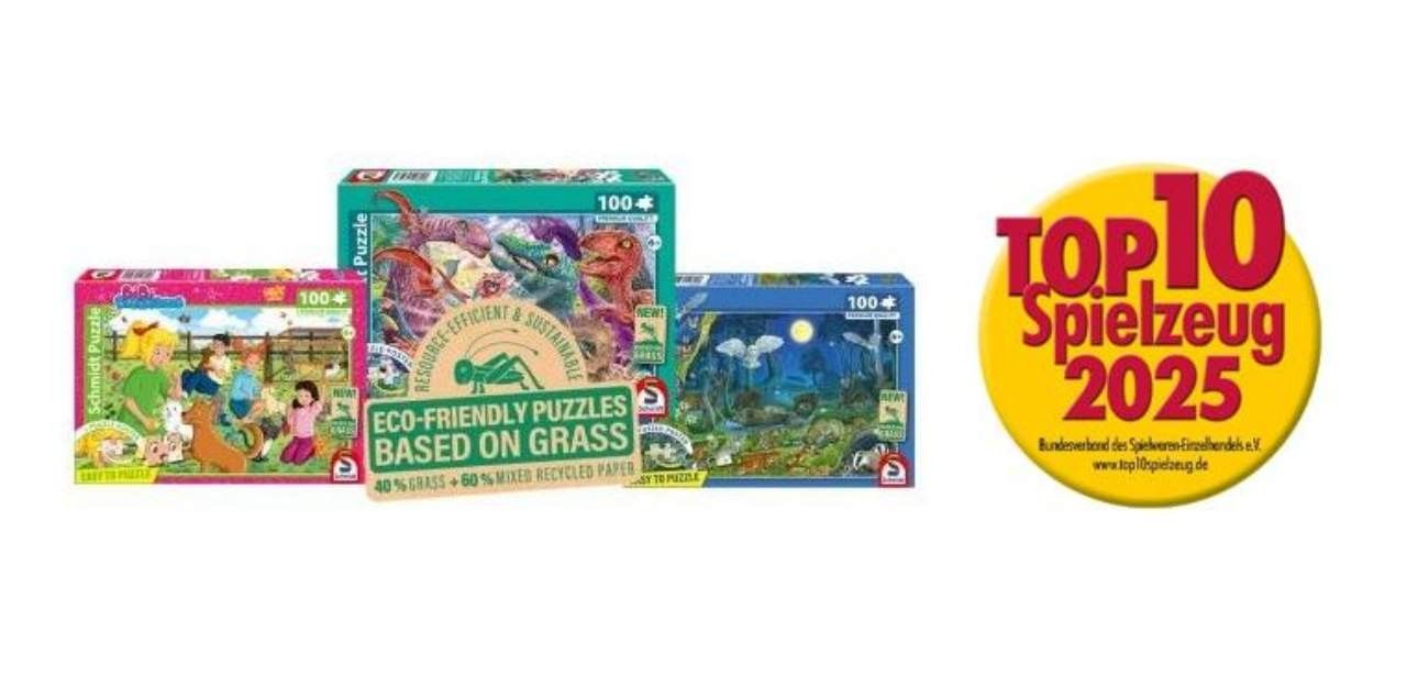 Mit NATPAX(R) schafft Schmidt Spiele eine umweltbewusste Puzzleerfahrung durch die Kombination von 40 Prozent Gras und 60 Prozent Altpapier in einer 1,9 Millimeter dicken Puzzleschicht. Die innovative Graspappe bietet eine feste, strukturierte Oberfläche, die exakte Verbindungen ermöglicht. Vollständig nach EN-71 Teil 3 geprüft, gewährleistet sie unbedenklichen Puzzlespaß. Die Aufnahme in die TOP 10 Spielzeuge 2025 durch den BVS honoriert die konsequente Fokussierung auf Nachhaltigkeit, Qualität und kreatives Design, ästhetische Innovation.